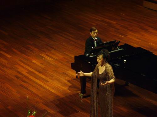 随着钟声响彻音乐厅,激动人心的时刻即将来临。张锦老师首先以一首《贞洁女神》赢得了全场的喝彩。随后,曾晶老师、魏艳老师在掌声中演出了一首首耳熟能详的歌曲,如陕北民歌《兰花花》等,雅俗共赏。姜宣书老师的男高音咏叹调《人生是什么》打破了音乐厅上空久久缭绕的轻盈。在张霞老师、徐桦老师、张蓉老师、万敬之老师的精彩歌剧选段中,仿佛把我们带入了梦幻般的随想。《献身艺术,献身爱情》、《富尼古尼富利古拉》在谢荣辉老师和秦丹老师的演唱中将全场氛围推向高潮,男中音浑厚而有穿透力的声音,使整个音乐厅掌声雷动。音乐会最后的乐章李万进老师轻敏的男高音歌曲《我的祖国》为此次音乐会画上了完美的休止符。