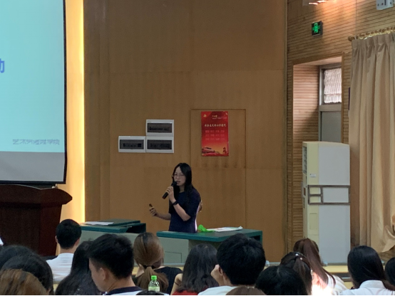 大会第二项,由艺术与传媒学院17级辅导员李蔚然老师做社会调查、社会实践、实习安全动员。